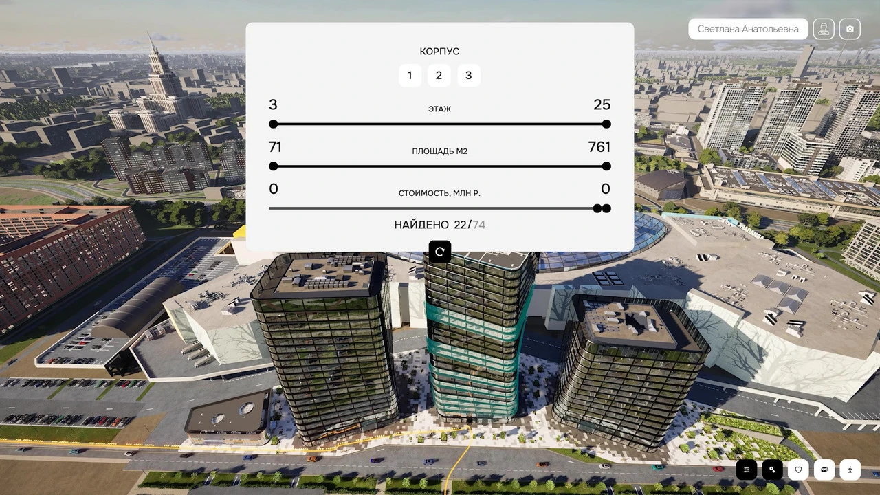 3. Это одна из первых в коммерческой недвижимости презентация в формате виртуальной прогулки по цифровому двойнику проекта.