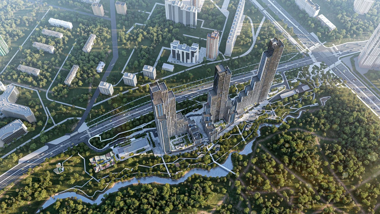 Особенность жилого комплекса — его размах: это три небоскреба, большая территория, множество сервисов, ультрасовременные архитектурные и технические решения.
