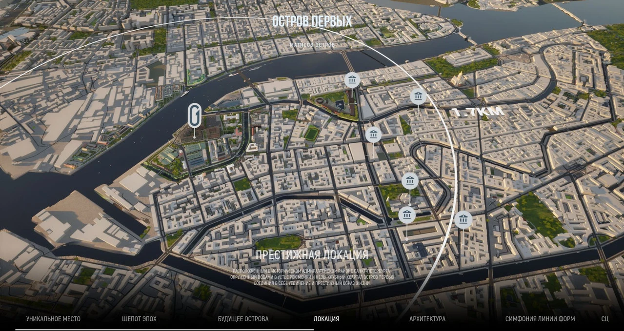 Премиальный квартал «Остров первых» возводится в центре Петербурга, на Матисовом острове. Это уникальное место для жизни, сочетающее современные технологии и истинный дух города.