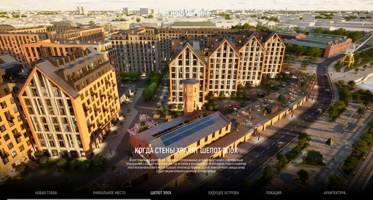Сайт стал завершающим аккордом и вобрал в себя часть наработок и материалов, которые мы ранее выполнили по проекту: 3D-визуализации, видео о проекте, лендинг.
